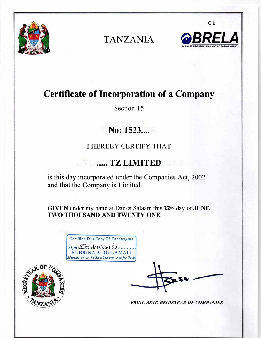 document type Certified certificate of incorporation