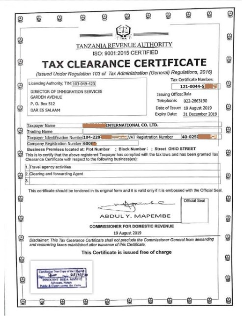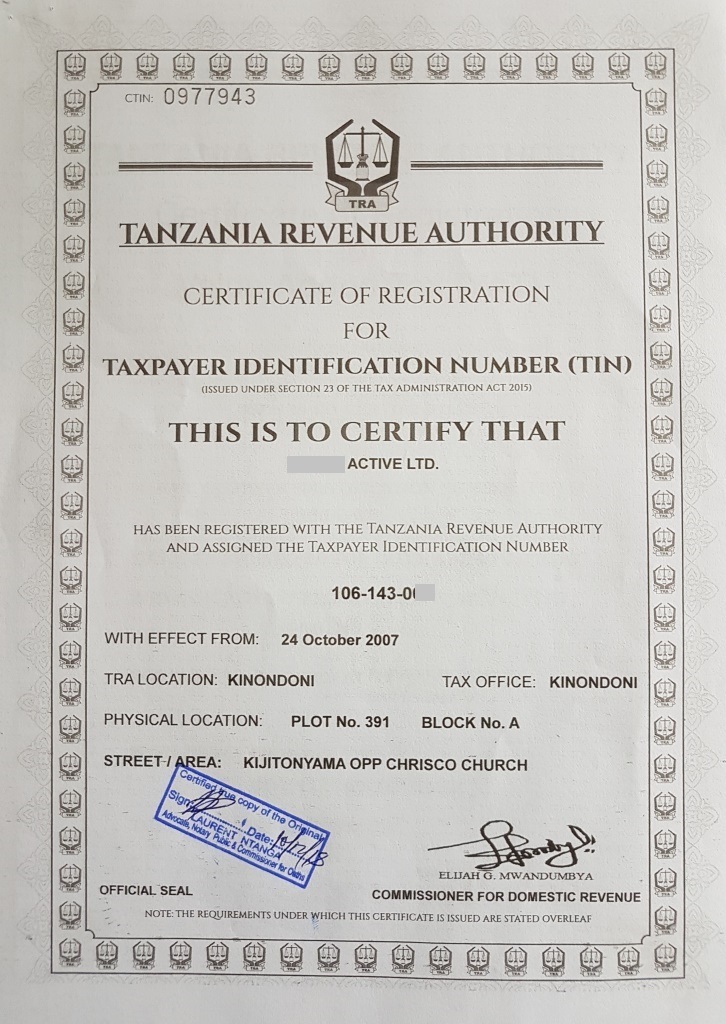 document type Certified TIN certificate