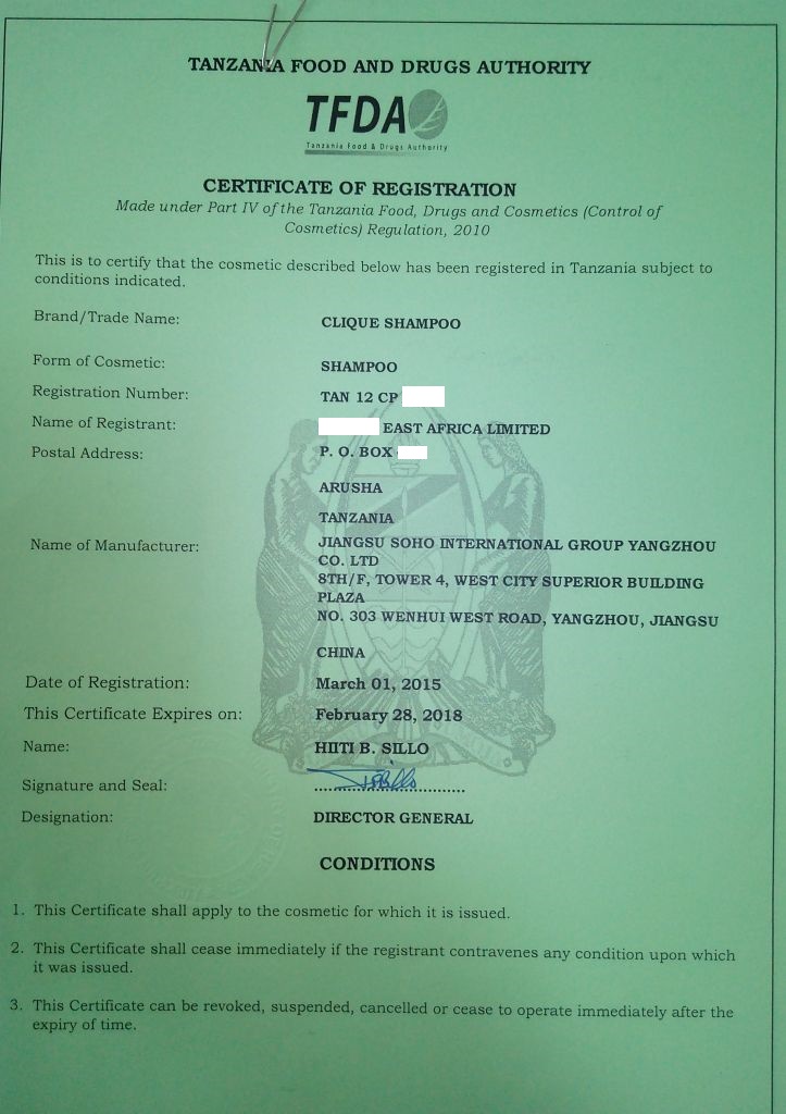 document type Cosmetics registration certificate