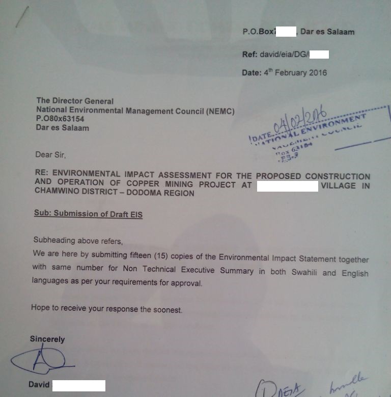 document type Cover letter EIA submission