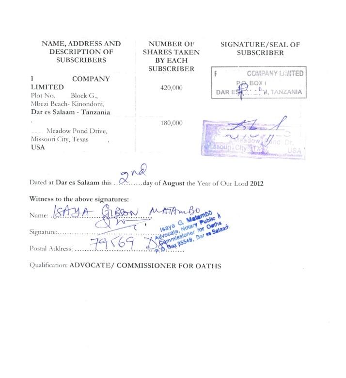 document type Certified Memorandum and Articles of Association