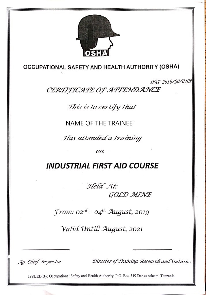 document type Certificates of trained first aiders