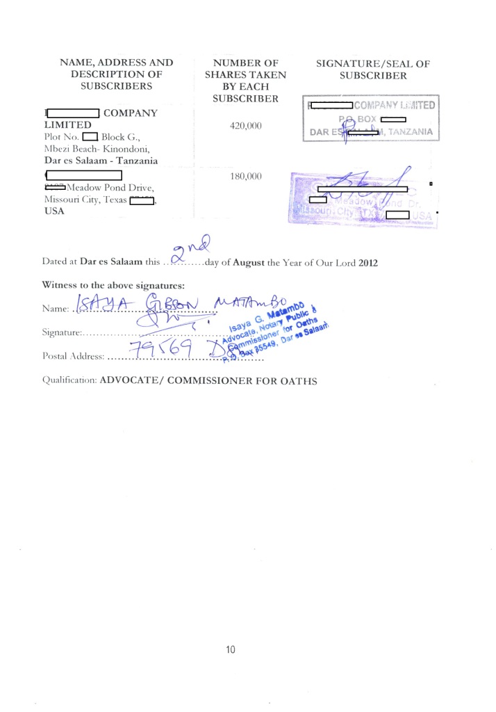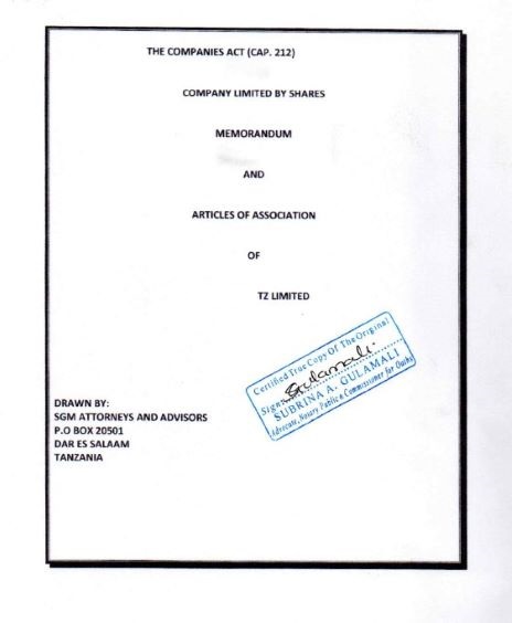 document type Notarized memorandum of association
