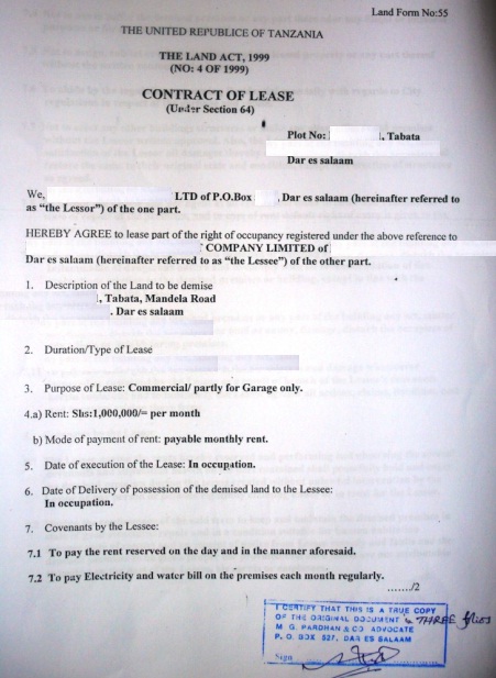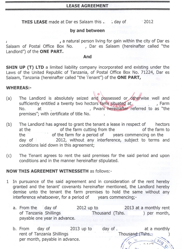 document type Notarized lease agreement