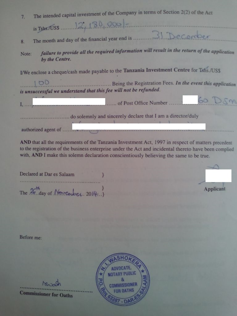 document type Notarized declaration of Compliance (form14b)