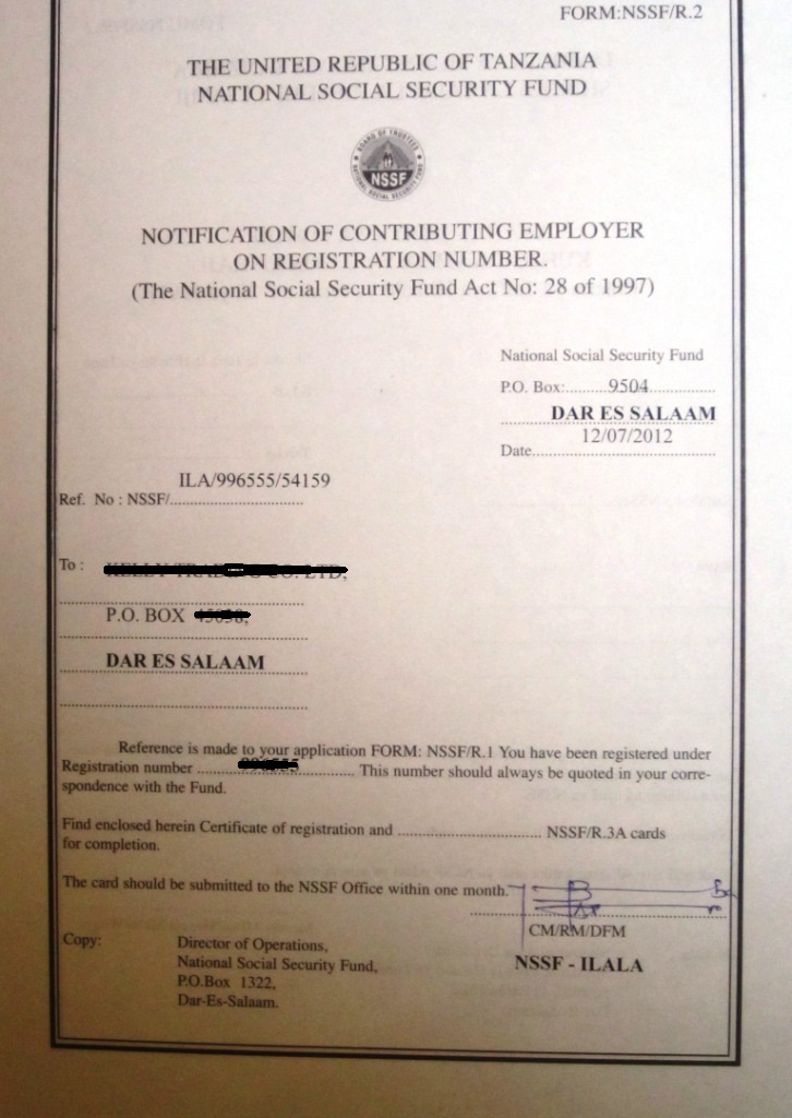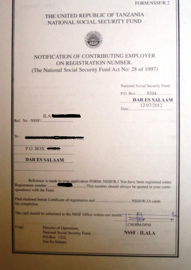document type Notification of employer registration - NSSF