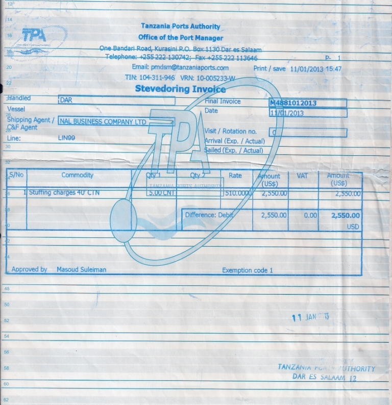 document type Payment invoice (port)