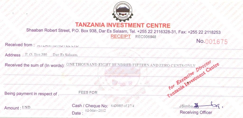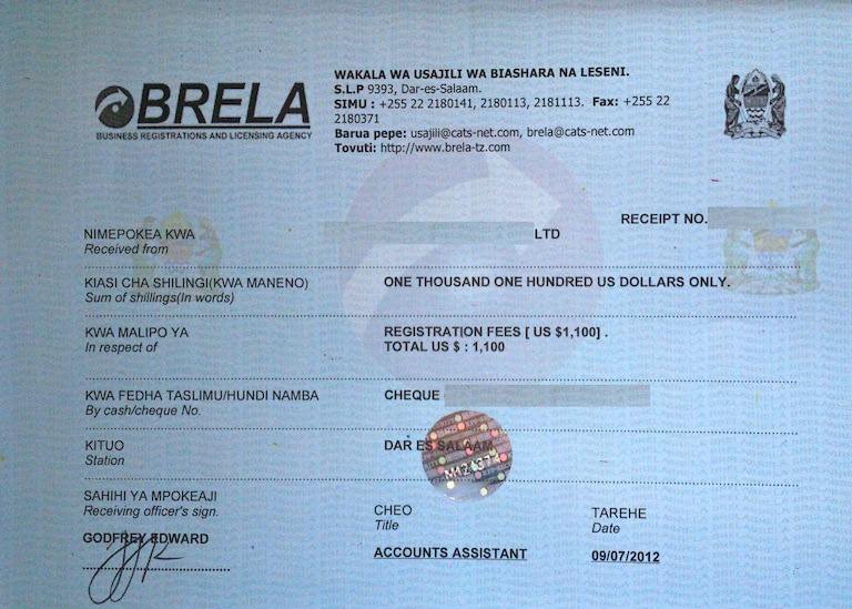 document type Payment receipt (BRELA - company)