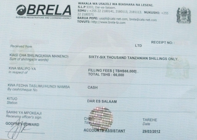 document type Payment receipt (BRELA)
