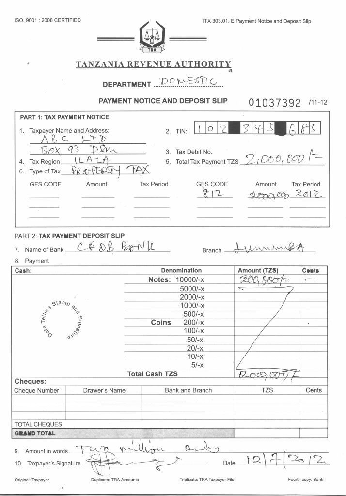 document type Payment Notice and deposite slip