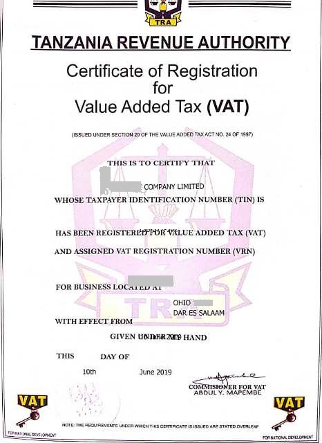 VAT certificate
