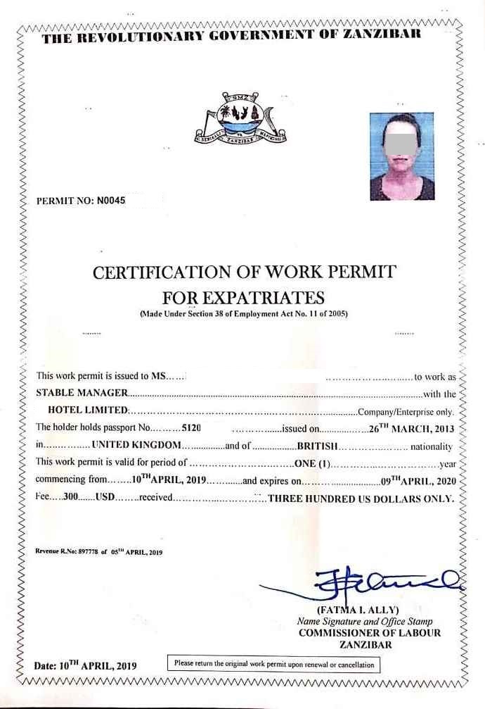 document type Work permit class A